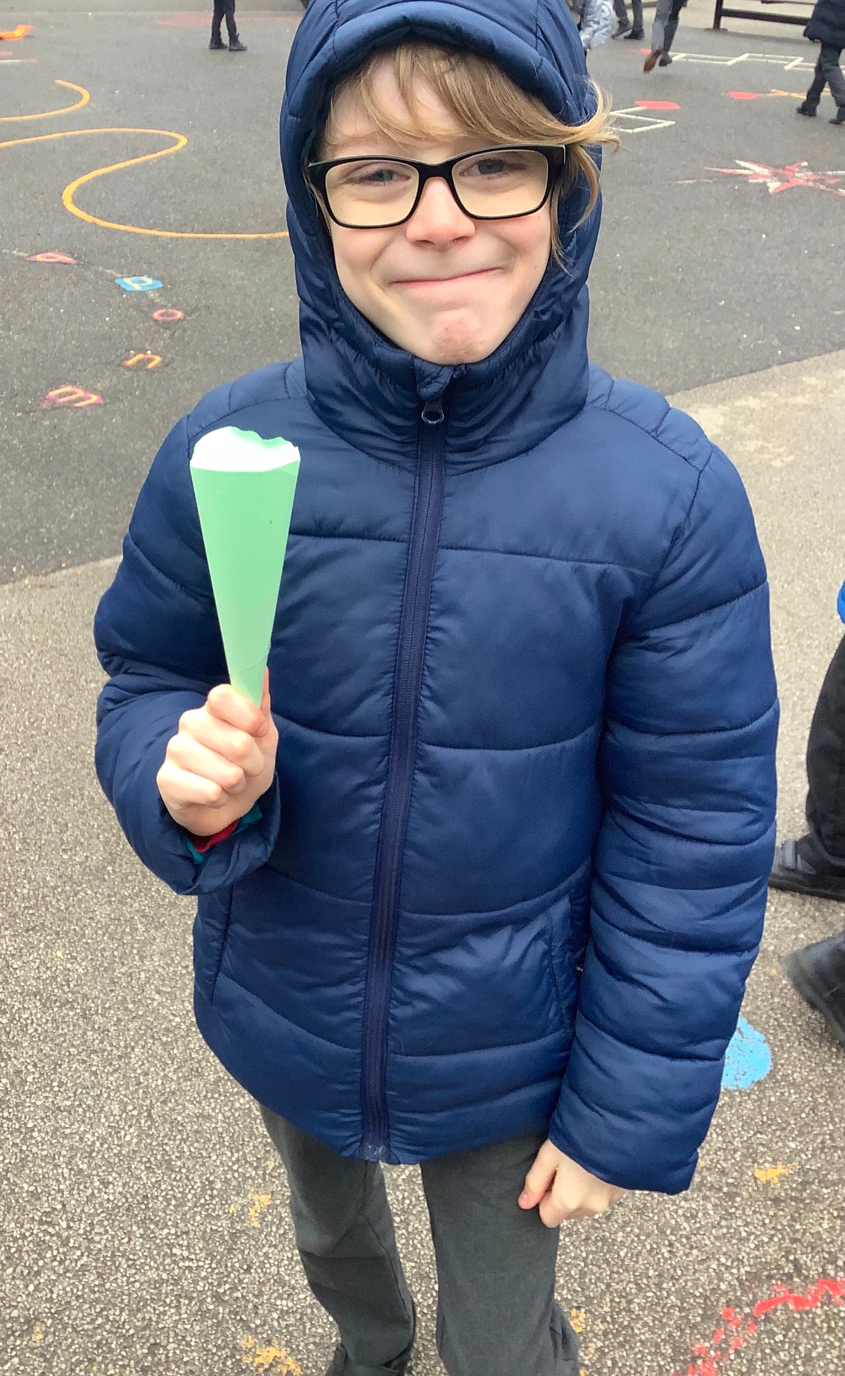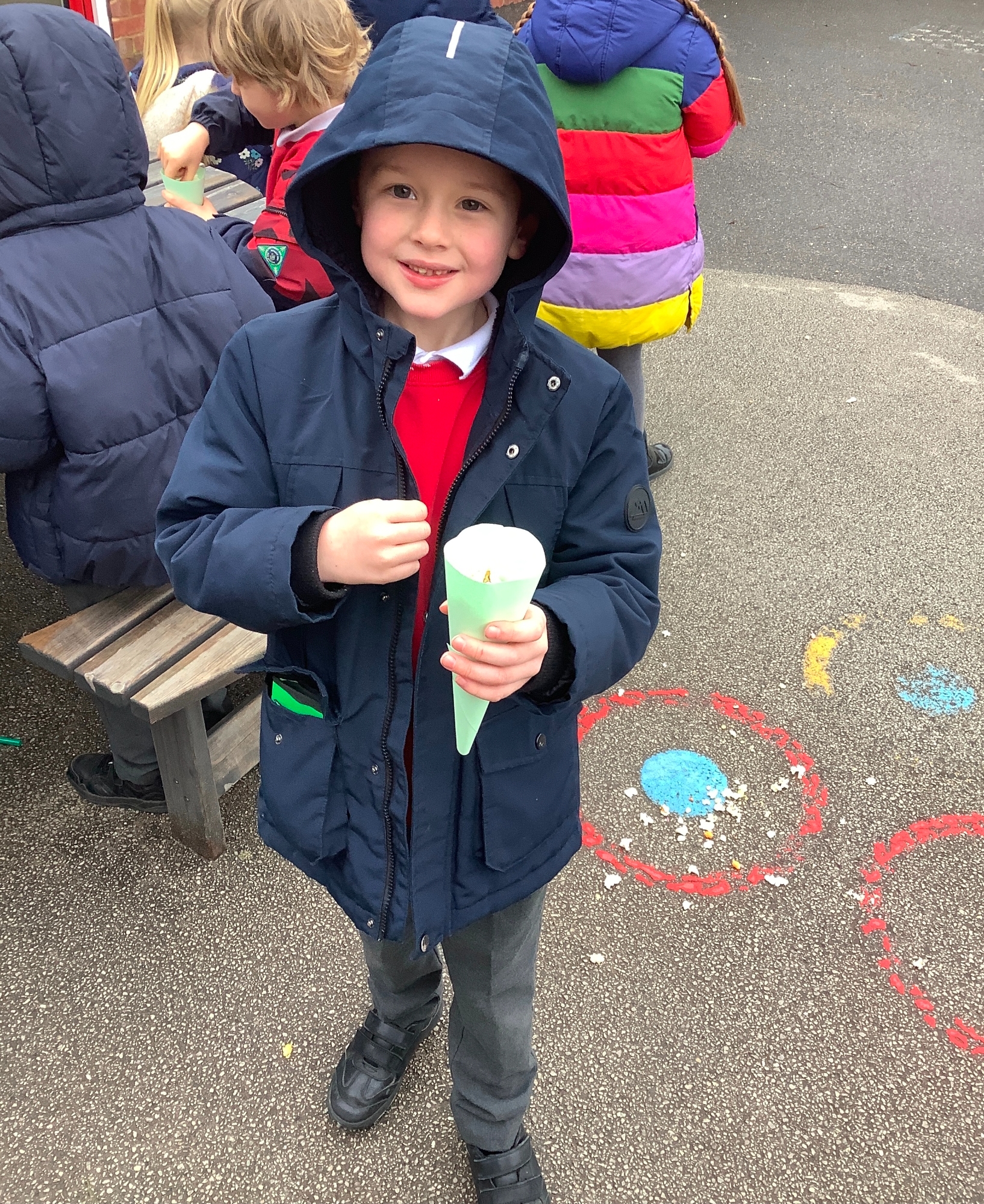 We spread positive messages for Wellbeing Week across the playground to put smiles on people's faces. We also created our own games for others to enjoy, such as hopscotch and obstacle courses.