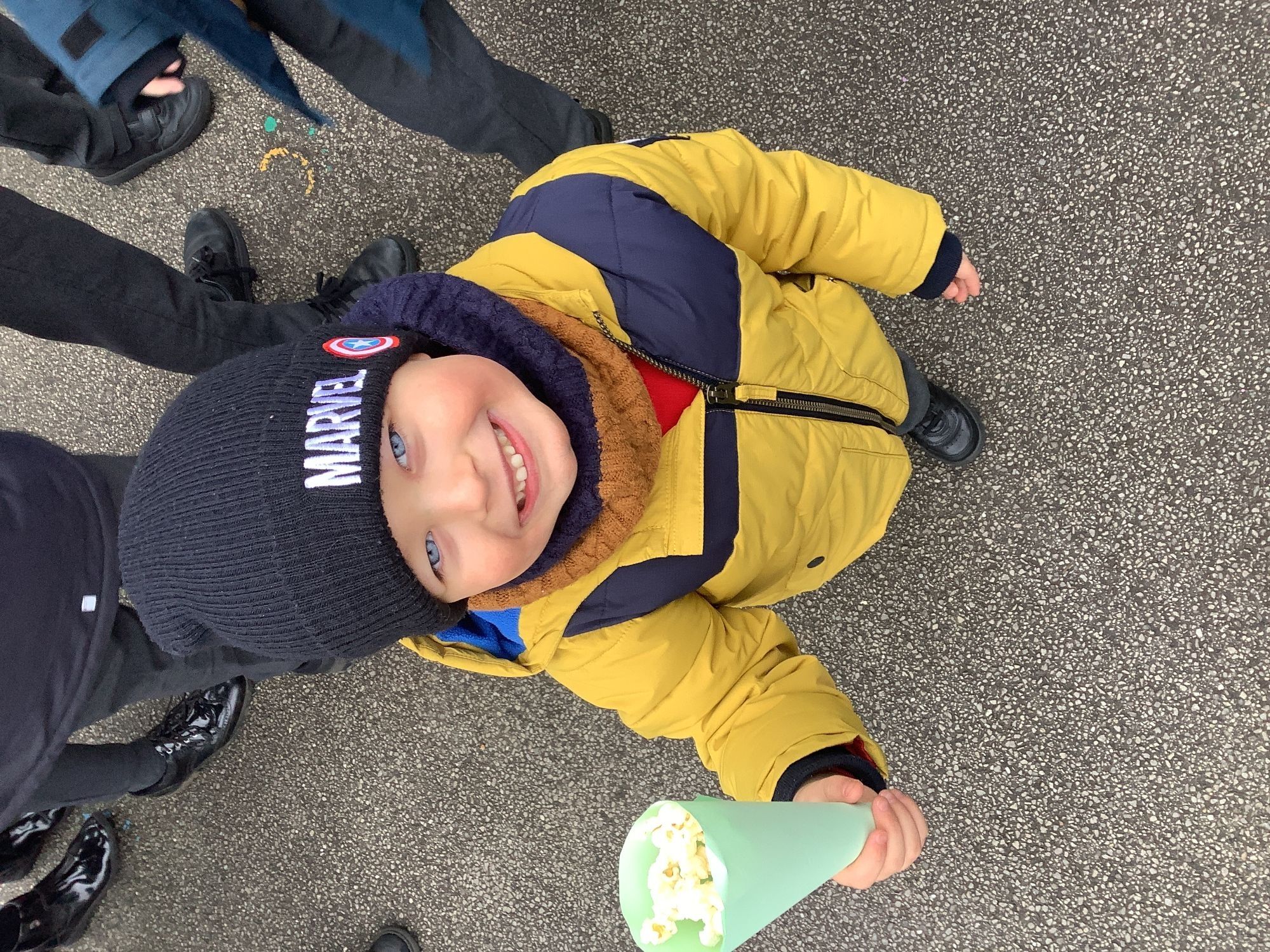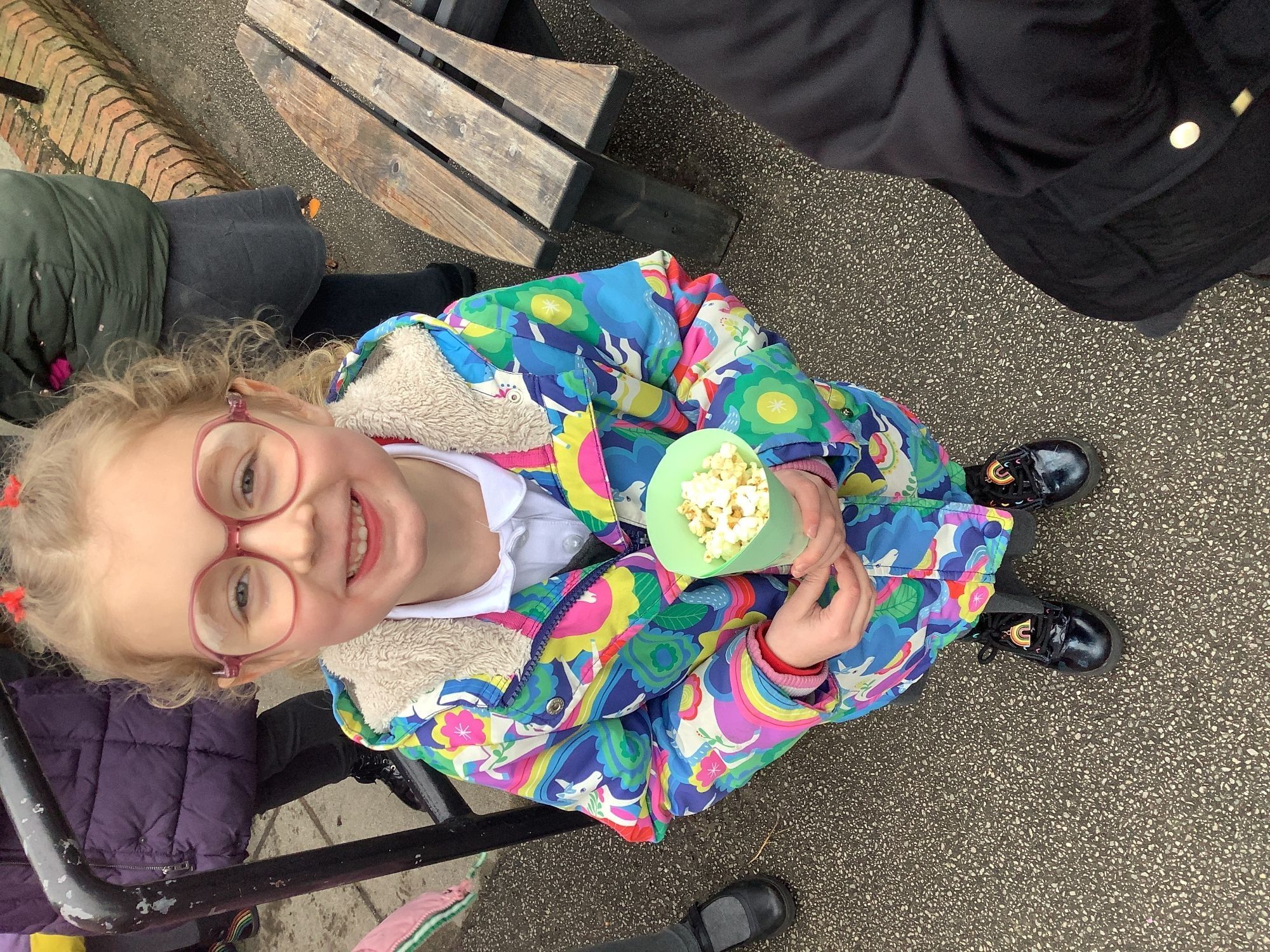 We enjoyed popcorn and rainbow drops today. It really put a smile on our faces!