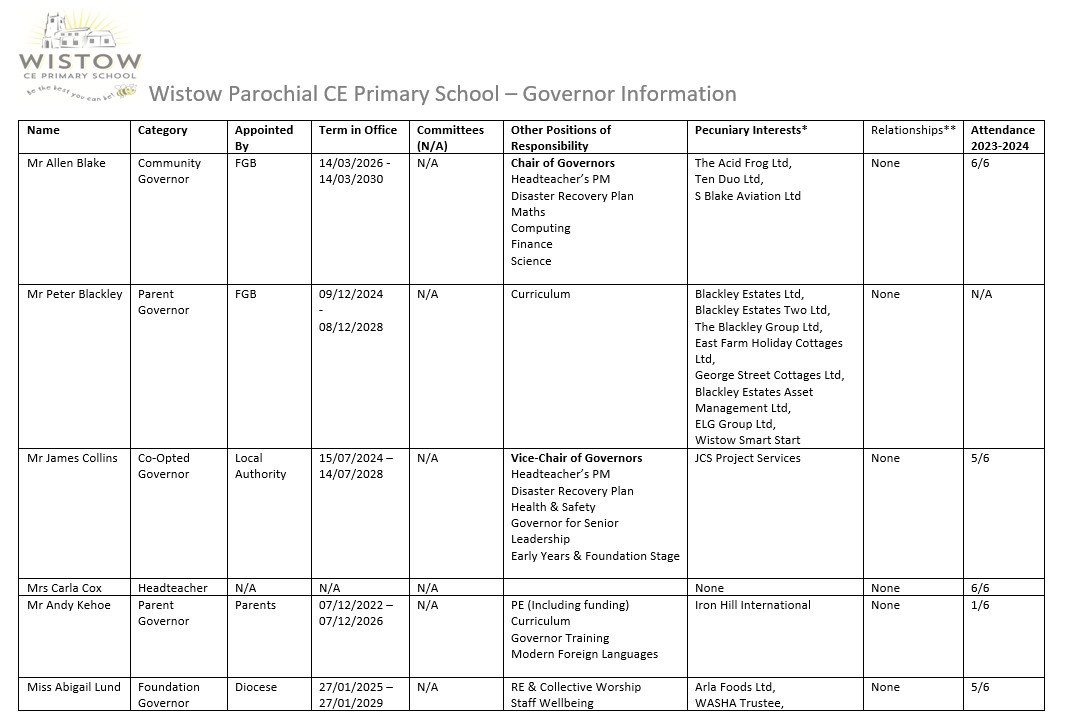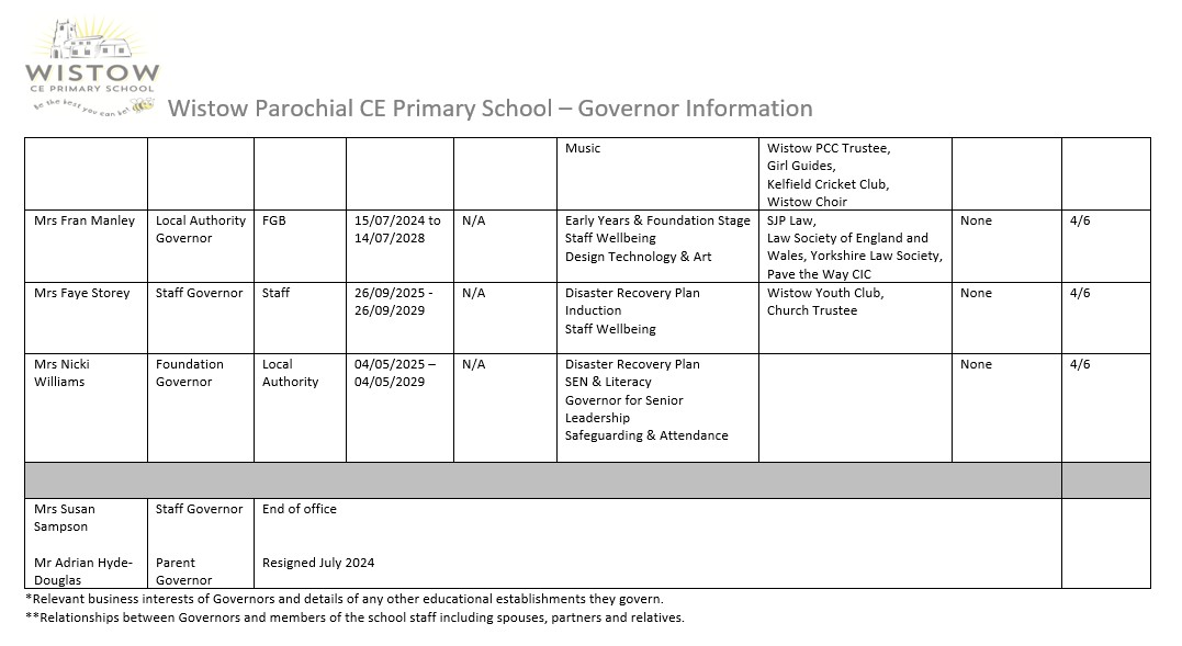 Please find below details of how our Governing body is structured, including the names, categories, responsibilities and terms of appointment for each Governor.